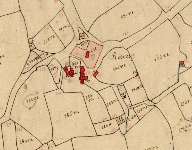 La structure du hameau est restée approximativement la même depuis 1812. Les deux ou trois exploitations agricoles de l'époque ont été transformées en habitation. Logis 1, de type ternaire, 1ère moitié du 19e siècle. Logis 2 (daté 1845) sans doute reconstruit sur l'emplacement d'un bâtiment figurant sur le cadastre de 1812. Ensemble de trois logis figurant sur le cadastre de 1812 et reconstruit vers 1850 (un de type ternaire, un à avancée et un élémentaire). En 1799, Yves Poncin et Yves Pouliquen, paysans-marchands de toiles, habitent le hameau. Ancienne buanderie attestée mais disparue.