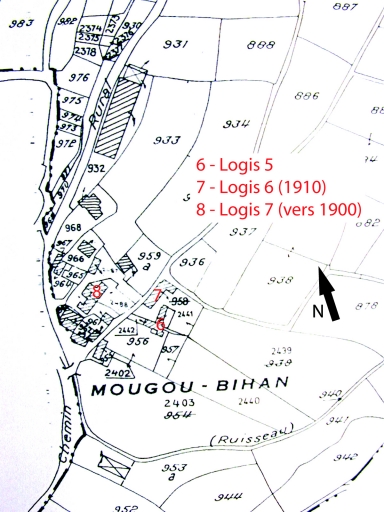 De type à avancée en rez-de-chaussée et à toit en bâtière, le logis 8, daté 1670, de dimensions réduites, est de type élémentaire, tout comme le logis 10, certainement contemporain. Le logis 3, daté 1710, conserve un linteau portant le nom des commanditaires, P. Belec et C. Pogom.