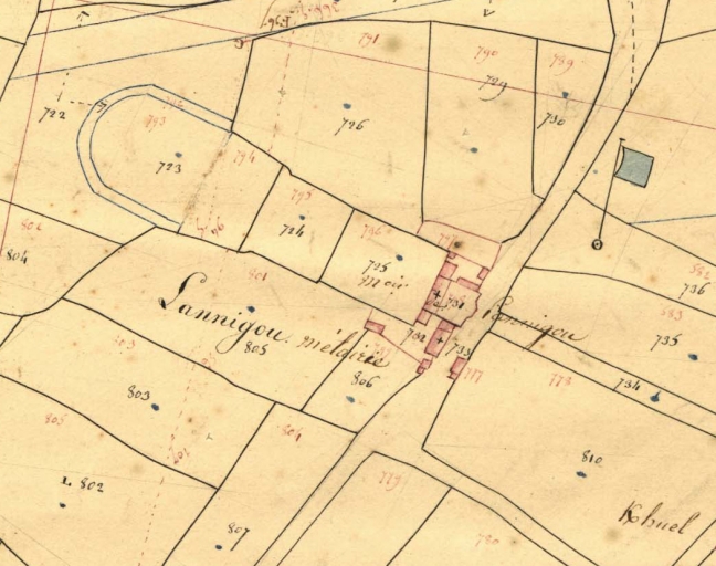 Commune de Taulé. Section B, dite de Lannigou. Troisième feuille. Plan cadastral, dessin, Pillon géomètre, 182. (A.D. 29 ; série 3 P 337).