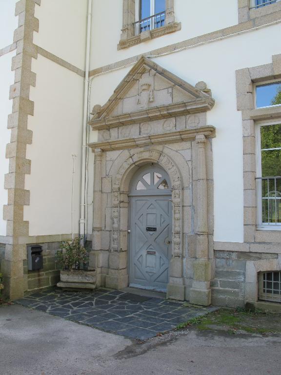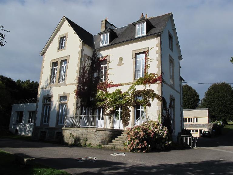 Edifice de plan massé composé d'un corps rectangulaire principal sur lequel se greffent une aile en retrour d'équerre sur la façade antérieure et deux tourelles sur les façades latérale et postérieure. Maçonnerie enduite avec encadrements de baies, chaînes d'angle et portail d'entrée en pierre de taille.