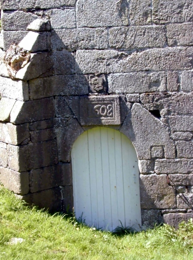 Porte est : blason Coatlosquet. Pignons est et ouest : crossettes en forme de lions.