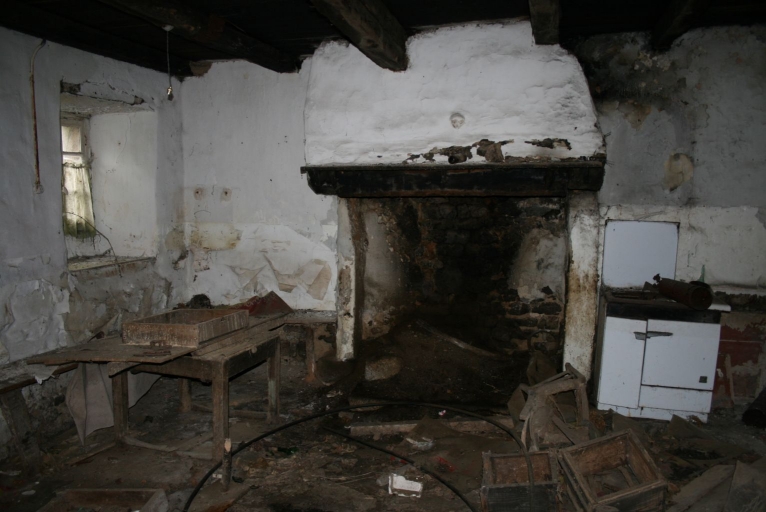 Logis 1 et 2 : à avancée (étage, toit rampant). Portes en arc plein cintre. Cheminée monumentale en granite.