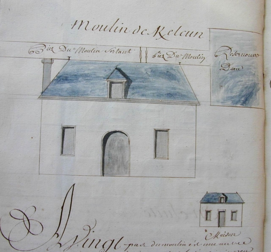 A.D. Finistère, 41 H 5. Dessin à la plume aquarellé et description des bien de la commanderie des hospitaliers de Saint-Jean de Jérusalem basée à La Feuillée, 1731.