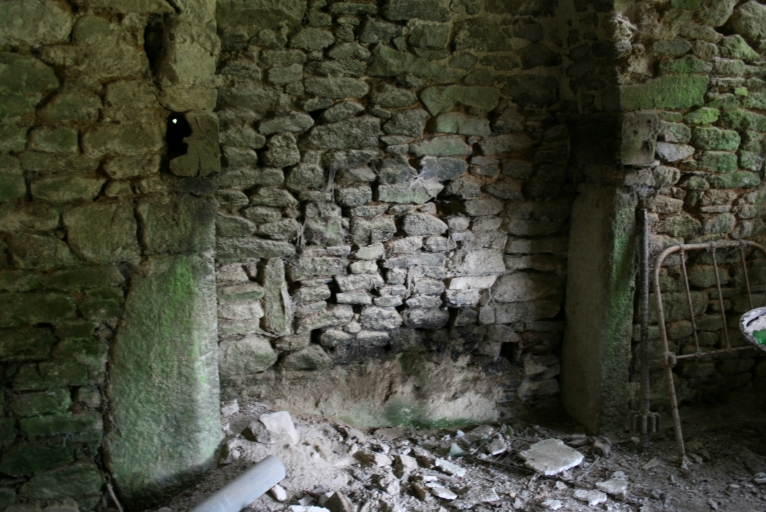 En 1969, une porte à l'étage façade nord (aujourd'hui bouchée) permettait d'accéder à la chaussée et une échelle de meunier (également disparue) desservait l'étage coté est. Depuis 1969, plusieurs ouvertures ont été perçées, deux au rez-de-chaussée, deux à l'étage. A l'extérieur, une pierre d'attache dans le chaînage (angle sud-est) est toujours présente. A l'intérieur, le moulin conserve l'arbre, les engrenages, les meules et la roue (vestiges). Au rez-de-chaussée, près de la cheminée, une pierre est gravée d'une croix de Malte et à proximité de la porte, une pierre porte une date partiellement lisible du 19e siècle.