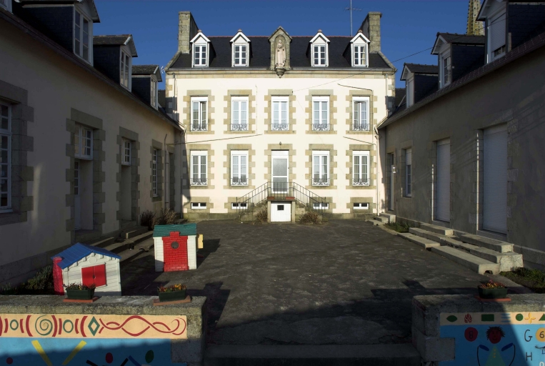 Quatre établissements scolaires bâtis entre 1865 et 1908 ont été repérés. 1. Mairie-école : construite en 1865 d´après les plans de l´architecte Jules Boyer, de Morlaix, abritant la mairie (bâtiment sur rue) et à l´origine l´école de garçons (aile en retour d´équerre servant de salles de classe). Suite à la construction d´une nouvelle école publique de garçons en 1908, le bâtiment devient l´école publique de filles, la mairie occupant le bâtiment sur rue jusqu´en (?), date de la construction d´une nouvelle mairie, en face. Actuellement école publique maternelle et primaire Yves Lazennec (premier instituteur dans les années 1860). 2. Ecole privée de filles (dite école des soeurs ou école Sainte-Thérèse) : établie en 1873 avec le concours de M. de Bourbon, gendre de M. de Kerret, propriétaire du château de Quillien (Pleyben) ; enseignement dispensé par la communauté des filles du Saint-Esprit, avec internat. En 1902 : 200 élèves, 70 pensionnaires. Actuellement école privée maternelle et primaire. 3. Ecole privée de garçons (dite école des frères ou école Saint-Michel) : construite en 1899 avec le concours de M. de Bourbon, gendre de M. de Kerret, propriétaire du château de Quillien (Pleyben) ; enseignement dispensé par la communauté des frères de Ploërmel, avec internat. En 1902 : 175 élèves, 62 pensionnaires. Fermeture en 1972. Actuellement locaux à usage communal. 4. Ecole publique de garçons : construite en 1908, travaux réalisés par l´entrepreneur Mazé de Brasparts. Collège mixte jusqu´aux années 1980 (?). Actuellement désaffectée.