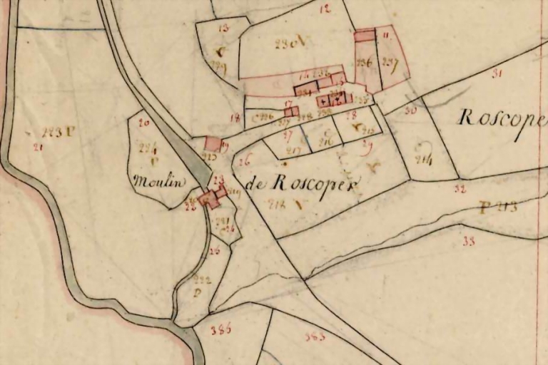 A.D. Finistère, 7 S 82 (ruisseau de Ster an Nod). Moulin du Bois, 1893.