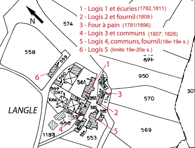 La structure actuelle du hameau ne diffère guère de celle figurant sur le cadastre de 1812 à l'exception d'une ferme disparue (au nord) et de bâtiments récents construits à l'ouest et au nord. Cinq anciennes fermes avec dépendances associées construites entre la seconde moitié du 18e et le début du 20e siècle ont été repérées. Certains éléments remployés (pierres datées 1638, 1771) pourraient provenir de Castel Du, hameau voisin, où Mathieu Larrer, recteur de Brasparts et fondateur de l'ancienne chapellenie dite de Chateaunoir, s'était fait construire une maison en 1663. Logis 1 construit en 1782 pour Louis Le Guillou, avec remploi de lucarnes du 17e siècle provenant de Castel Du, communs en alignement datés 1811. Logis 2 construit en 1809 pour Louis Le Guillou, four à pain plus tardif. Four à pain monumental (sud) daté 1781 et restauré en 1896. Logis 3 daté 1807, ancienne étable attenante datée 1828. Logis 4 bâti au 18e siècle, double orientation tardive suite au rajout d'une avancée au nord, four à pain 19e siècle ; pierres de remploi (1638, 1771) dans une dépendance ruinée. Logis 5 construit vers 1900.