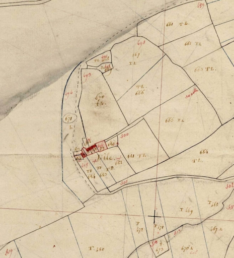 Le logis 1 pourrait dater du 18e siècle et figure sur le cadastre de 1812. Les communs formant alignement avec lui (écuries, grange) pourraient remonter à la seconde moitié du 19e siècle, tout comme le puits. Une autre dépendance agricole porte la date de 1872 ainsi que le nom du commanditaire, Crenn. Le logis 2 porte la date de 1934.