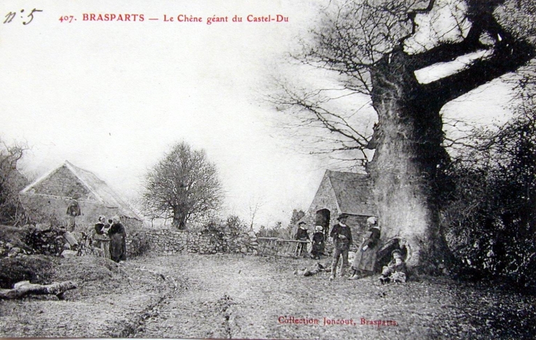 Le village s'est implanté au sud d'un établissement gallo-romain (cadastre de 1999, section H 2, parcelles 487-488) dont témoignent quelques vestiges (tuiles enfouies et chemin à talus maçonné). Des restes de scories trouvées à l'est des constructions actuelles (parcelle 516) indiquent une exploitation du minerai de fer pouvant remonter à cette période. Castellu (1440) ou Chasteau Noir (1663) ne figure pas parmi les lieux nobles de Brasparts mais certains éléments provenant d'un bâtiment du 17e siècle disparu ont été remployés dans des constructions rurales des environs, notamment à Langle. Cette construction indûment appelée "château" par la suite, sans doute à cause de son allure soignée, correspondait vraisemblablement à une maison "nouvellement construite" en 1663 pour Mathieu Larrer, recteur de Brasparts, également fondateur de l'ancienne chapellenie dite de Chateaunoir. Entre les deux noyaux bâtis présents sur le cadastre de 1812, une ferme de 1861, très remaniée, conserve une grange repérée. Dans la partie nord, une grange (1881) et un four à pain (ils figurent sur une carte postale ancienne) ont été repérés. La partie sud conserve un logis de 1631 (voir dossier individuel) qui a été déclassé en partie agricole lors de la construction d'un nouveau logis (vers 1920).