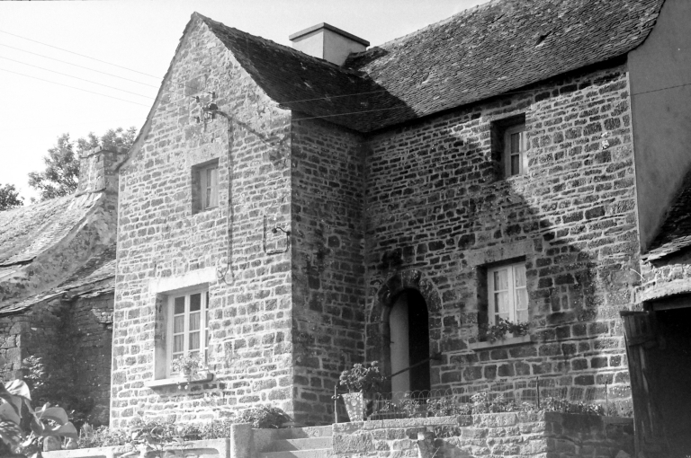 Logis à deux avancées, celle située en façade postérieure, plus réduite, enferme un escalier en vis en bois (refait). Gros-oeuvre en moellons équarris de granite pouvant provenir de la carrière proche du Goël.