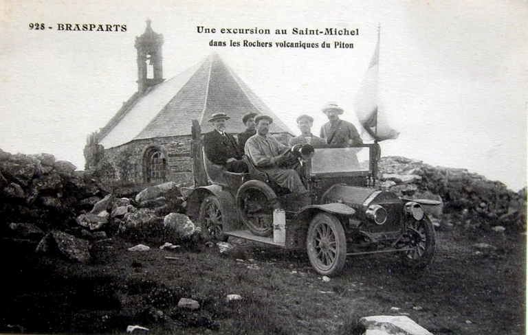 L'édifice, aussi appelée chapelle de la Motte Cronon, aurait été bâti en 1674 à l'initiative de la famille de Kermabon, de Brasparts, et de fabriciens dont Yves Le Guillou. Signalée en ruines en 1792, elle ne figure pas sur le cadastre de 1813. Elle a été reconstruite entre 1820 et 1821 (porte ouest, clocheton), en remployant le clocheton du 17e siècle, puis restaurée en 1892 et après 1945. En 1918, l'architecte Charles Chaussepied propose le projet d'installation d'une chapelle commémorative à la mémoire des morts pour la France sur le monts Saint-Michel de Brasparts. Ce projet ne verra pas le jour à Brasparts, mais sera réalisé à Sainte-Anne d'Auray (Morbihan).