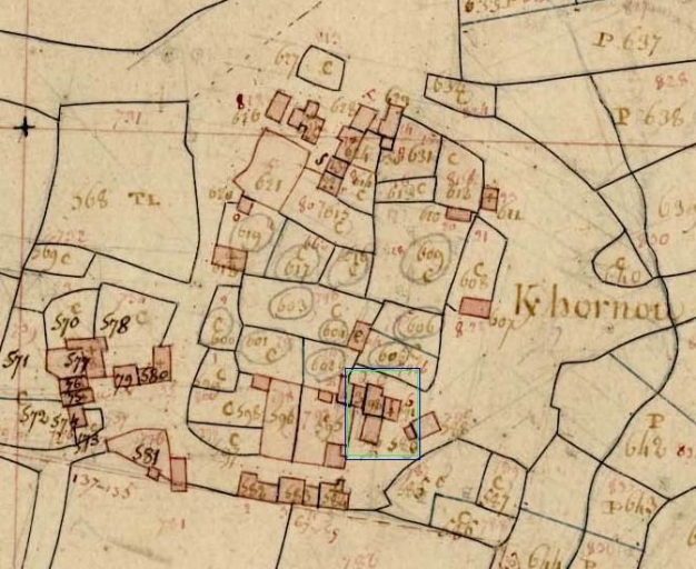 L'édifice porte la date de 1650 sur une pierre de remploi placée près de la fenêtre de l'avancée. Sur le cadastre de 1813, il est flanqué, à l'ouest, d'un autre corps de bâtiment (crèches ou étables ?). Le plan partiellement inhabituel (avancée postérieure séparée par un large mur de refend) résulte sans doute de modifications tardives mais anciennes. Un poêle à crêpes aurait existé à gauche de la cheminée. Les fenêtres du rez-de-chaussée ont été agrandies au 19e siècle. Ce bâtiment a été progressivement délaissé au profit d'un nouveau logis construit en 1928 à proximité. Couverture récente.