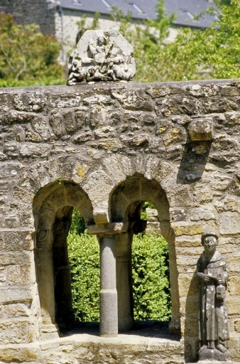 La salle capitulaire de l'abbaye de Daoulas pose quelques problèmes quant à sa datation. R. Grand en 1958 la considérait comme une construction plus ancienne que le cloître, L.M. Tillet en 1982 parlait en ces termes de la façade : elle est d´un style et d´une facture très archaïques, certainement antérieurs au 10e siècle, sans que l´on puisse préciser davantage. Pour P. Guigon, rien ne permet d´avancer que l´entrée de la salle capitulaire serait antérieure au 10e siècle. En 1990, M. Bailleu expliquait que les sondages effectués à l´intérieur de la salle du chapitre (fin 11e, début 12e siècle), ont révélé l´existence de structures antérieures. Deux murs parallèles orientés est-ouest semblent se poursuivre au-delà du mur ouest de la salle capitulaire. Dans l´état actuel des recherches il est délicat d´aller plus avant dans l´essai de datation de cette façade, d´apparence fruste certes, notamment en comparaison avec le cloître situé à proximité et daté de la fin du 12e siècle. Mais il est tout à fait possible que cette salle fut édifiée, comme le proposait M. Bailleu, à la fin du 11e siècle ou tout début du 12e siècle.