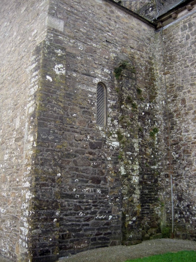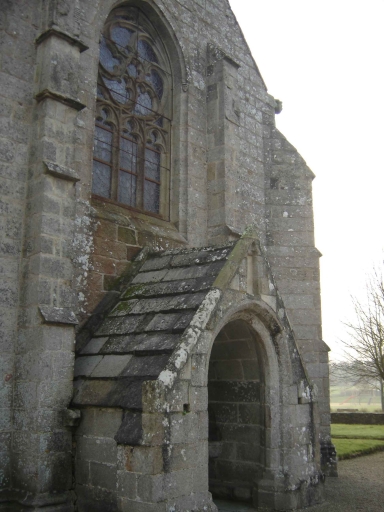 L'élévation extérieure nord de la nef est scandée par six contreforts plats en grand appareil de granit. Une travée sur deux est percée d´une baie en arc brisé, longue et étroite. Ces baies occupent près de la moitié supérieure du mur. Le bras de transept nord est épaulé par des contreforts corniers et possède un contrefort au mur ouest percé d´une petite baie de type meurtrière. Le pignon, ajouré d´une baie du même type, possède une porte certainement remaniée au 19e siècle. Le mur oriental est percé d'une baie identique aux précédentes. Ces trois baies présentent des arcs en plein-cintre, à la différence de celles qui éclairent la nef.