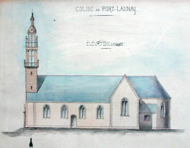 Edifice construit à l'emplacement d'une ancienne chapelle Saint-Nicolas entre 1854 et 1858 d'après les plans de l'architecte diocésain Joseph Bigot après que Port-Launay soit érigée en paroisse et en commune en 1847. Travaux exécutés par l´entrepreneur en maçonnerie Le Quéau.