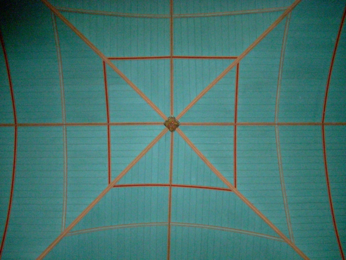 Plan en croix latine à trois vaisseaux et à cinq travées. Choeur peu profond à chevet plat flanqué de deux sacristies au sud et au nord. Clocher à chambre de cloche à galerie ajourée de soufflets surmontée d´une flèche flanquée de quatre gâbles et cantonnée de pinacles. Petite chapelle des fonts baptismaux au nord, au niveau de la troisième travée. Gros oeuvre en pierre de taille, couvert partiellement d´un enduit crème. Les pierres de construction proviennent d´édifices en ruines de la commune et les ardoises d´une carrière de Saint-Goazec. Nef de type obscure couverte d´un lambris peint en bleu avec nervures en ocre et en rouge, entraits décorés à engoulants et sablières à écussons. Arcades en arc brisé reposant sur les chapiteaux toscans soutenus par les colonnes. Sol couvert de dalles de granite.