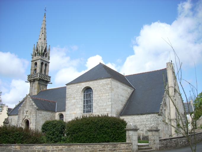 Edifice de style néogothique flamboyant. Le portail en anse de panier a été influencé par celui de Saint-Herbot (l'accolade est encadrée d'un faux gable qui coupe les pinacles) Edifice associé à un calvaire et à un monument aux morts. Etat sanitaire satisfaisant.