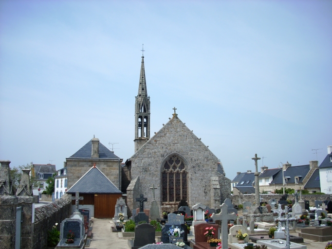 Partie est et porche du 15e siècle. L'édifice a été reconstruit au 18e siècle par le grand-père de Joseph Bigot, Etienne Bigot. Partie ouest reconstruite en 1877 d´après les plans de l´architecte diocésain Joseph Bigot par l´entrepreneur principal de Pont-L´Abbé Guilherme et par Jean-Louis Le Naour pour le clocher. Gustave Bigot réalise le projet de son père concernant l'exhaussement de la sacristie et la réfection des baies anciennes en 1892.