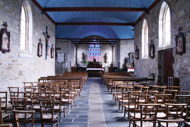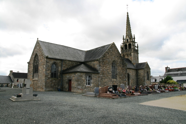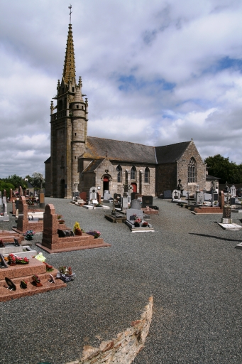 Etat sanitaire correct à l'exception du lambris en mauvais état. Edifice de style néo-gothique. Edifice situé dans un enclos avec cimetière et croix de cimetière. Le clocher est semblable à celui de Guerlesquin.
