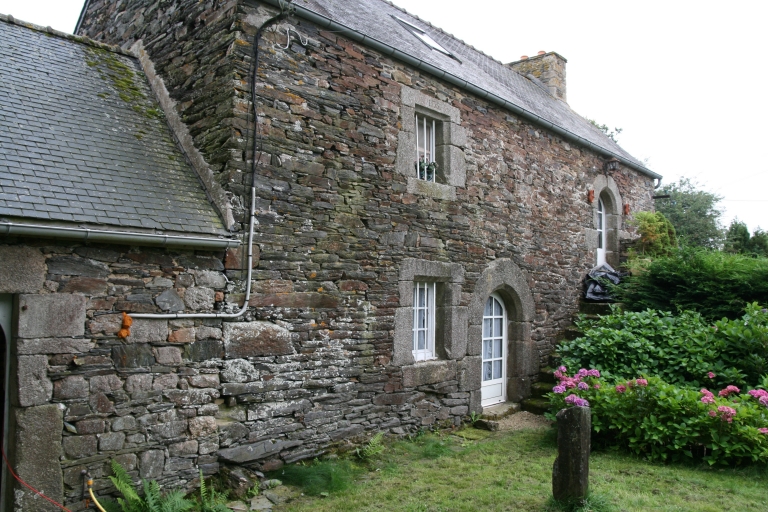 Cette maison, vraisemblablement une ancienne métairie noble, appelée 'maison manalle' dans les textes anciens, date du 17e siècle. Une pierre de remploi porte la date de 1773. La date de 1835 figurant sur une fenêtre de l'étage correspond à un remaniement. Percement de deux baies sur l'élévation sud. L'étage accessible par l'escalier extérieur pourrait indiquer un logement de prêtre.
