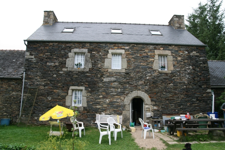 Logis à double orientation. Escalier de distribution extérieur au nord donnant accès à l'étage à usage de chambre (cheminée monumentale) et de grenier (cloison d'origine disparue). Salle du rez-de-chaussée avec cheminée monumentale en granite et saloir surmonté d'une armoire murale.
