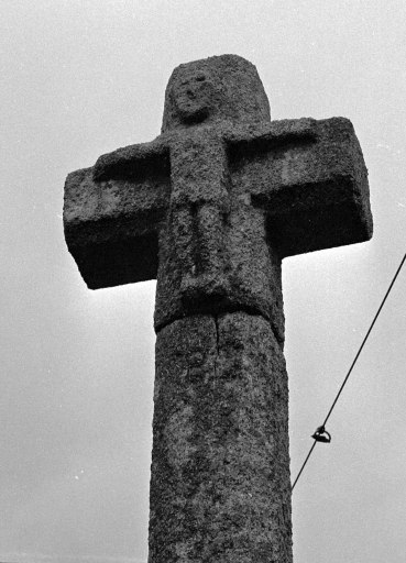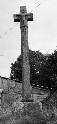 Croix en deux parties à fût de section carrée et chanfreinée sur socle cubique. Le croisillon, fixé sur le fût, est orné d'un Christ en croix en relief.