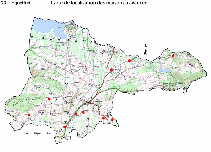 Le recensement révèle l'existence de 12 logis à avancée, soit 19 % de la totalité des logis indépendants repérés. Selon l´analyse stylistique et les chronogrammes extrêmes relevés, ils ont été bâtis entre le début du 17e siècle (Neslarc´h Izella), et le milieu du 18e siècle à Ty Crenn.