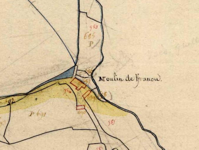 Des dix sites de moulins identifiés, aucun n'a fait l'objet d'un dossier individuel. Les moulins de Bodriec, Kerrannou et Rusquec dépendaient d'un lieu noble. Depuis 1813, deux moulins se sont implantés : le moulin de Mardoul, au nord-ouest de Kermarc et le moulin de Reundu, probablement à la fin du 19e ou au début du 20e siècle. Mardoul était en activité en 1907. En 1844 et en 1853, deux projets de construction de moulins sont à l'étude près de Saint-Herbot ; aucun d'entre eux ne verra le jour. Les moulins se situaient sur la rivière de l'Ellez ou ses affluents (moulins de Keryeven, de Mardoul, de Kerprouet, de Kerrannou et du Rusquec) et sur des ruisseaux affluents de la Douffine au sud-ouest de la commune (moulins de Bodriec, de Reundu, des Tourelles et de Kerguélen). Des vestiges existent à Kerrannou et Mardoul).