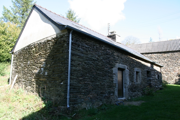 Mise en oeuvre majoritairement en moellon de schiste et / ou de quartzite, couvert d'enduit (logis 2) ; encadrements des baies en pierre de taille de granite. Logis 1 : de type élémentaire (à pièce unique), en alignement avec une étable. Logis 2 : de type ternaire.