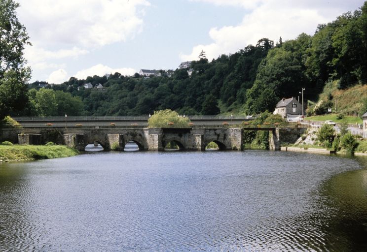 Pont à sept arches en arc brisé ; culées & six piles à avant-becs triangulaires : moellon de granite, arcs et parements : pierre de taille de granite ; pare-gravier : moellons de schiste. État actuel : une arche marinière contre la rive droite, sous poutrelles métalliques.