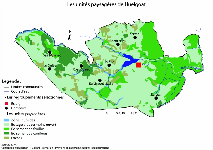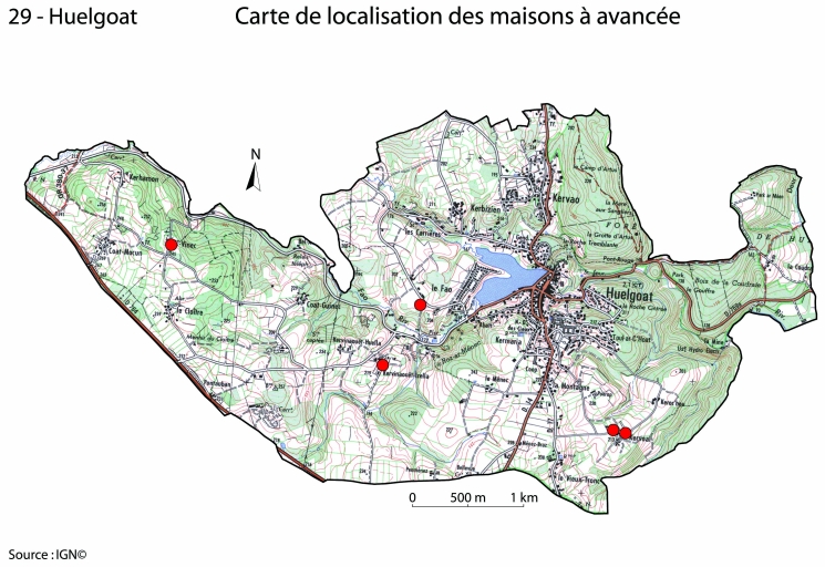 CONCLUSION. L´habitat rural traditionnel de Huelgoat, très remanié, a été en majorité rebâti au 19e siècle. On observe, comme pour d´autres communes de l´est des monts d´Arrée, une diminution des maisons à avancée et une augmentation d´une autre spécificité architecturale, les niches à lit-clos (kuz gwele), caractéristique du Trégor voisin.