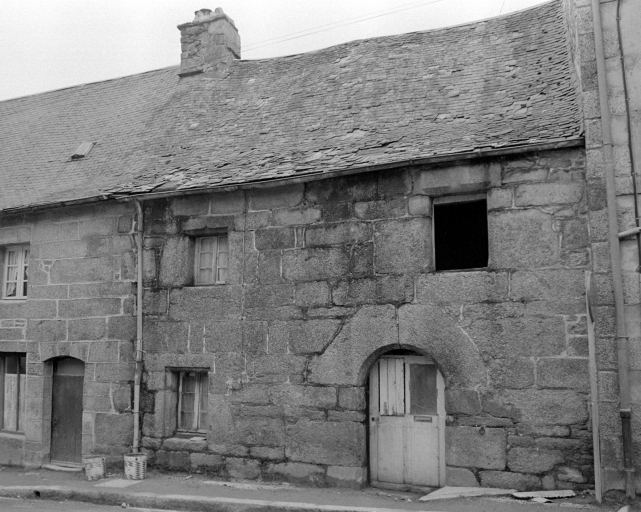 C´est la rue est la plus importante du bourg de Huelgoat. Formant faubourg, elle relie la chapelle Notre-Dame-des-Cieux au coeur de l´agglomération, la place Aristide Briand. Les constructions ont du débuter au nord avant de joindre progressivement la chapelle, à l´origine isolée. Le cadastre de 1836 montre bien cette structure linéaire où les édifices, souvent à usage multiple, commercial (ou artisanal) et résidentiel, donnent directement sur la rue alors qu´à l´arrière, le parcellaire étroit et profond inclut la présence quasi systématique de petites cours bordées de communs jouxtant jardins ou petits champs. Beaucoup de maisons étaient, selon le plan parcellaire de 1836, pourvues de tourelles d´escaliers. On distingue également plusieurs fours à pain. Avant le regroupement de tous les établissement scolaires publics, l´école de garçons, construite en 1880 et aujourd´hui disparue, se situait au 22, rue des Cieux. L´urbanisation du 19e siècle a entraîné la reconstruction totale ou partielle (façades sur rue) de la majorité des édifices à caractère semi-urbain. Ils présentent, par leurs volumes, le traitement des façades et les matériaux mis en oeuvre, à l´exception de certains rez-de-chaussée en partie remaniés, une certaine homogénéité. C´est, entre autres, le cas de l´alignement entre les n°37 et 45, caractérisé, comme beaucoup de maison de la rue, par des éléments récurrents : trois travées, bandeaux séparant les niveaux, corniches, chaînages d´angle et encadrements des baies en pierre de taille de granite. Quelques maisons sont antérieures : le numéro 51 (fin 18e siècle ?) et les numéros 31-35 (17e siècle) ; comme le montre la photo de 1975, le numéro 35 a été entièrement reconstruit. La période de l´entre-deux-guerres est représentée par le numéro 5 (mise en œuvre en moellon de granite à tête dressée, fronton) et la devanture d´un magasin en mosaïque décorative). Sur un peu plus de cinquante maisons, 25 ont été illustrées dans ce dossier.