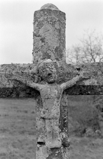 Croix fixée sur un affleurement rocheux. Fût à écots.
