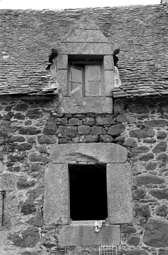 Ferme construite en gros moellons de basalte (?) calés avec des petites pierres. Pierre detaille de granite réservée aux encadrements.Type à fonctions multiples croisées qui superpose le grenier à la salle, la chambre haute à l'étable. Etage rabaissé en comble à surcroît dans un second temps et transformé en comble à surcroît éclairé par trois lucarnes en pierre, aujourd'hui détruites. Trois portes : une sur la façade ouest, les deux autres sur la façade est. Cheminée du rez-du-chaussée en granite, à piédroits chanfreinés et corbelets rainurés. Cheminée de l'étage à piédroits largement chanfreinés et corbelets en bois.