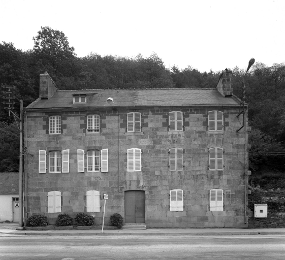 Bâtiment non mitoyen donnant sur l'ancien quai et chemin de halage d'un côté et une venelle dite 'route de la montagne' de l'autre. Gros oeuvre en pierre de taille de granite et microdiorite quartzique, à l'exception de l'encadrement des baies du second étage, en kersantite. Linteaux en arc segmentaire. Elévation à cinq travées.