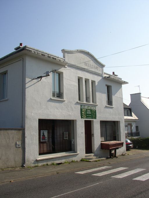 L´ancien café-hôtel Bellevue se trouve à l´entrée de la station balnéaire du Pouldu, aujourd´hui en continuité d´urbanisation. Elle s´aligne directement sur la rue qui descend légèrement, d´où la présence d´un escalier de trois marches pour accéder à la porte d´entrée. Ce bâtiment de base rectangulaire compte un étage. La façade principale, couronnée par un fronton surhaussé, est symétrique. Le rez-de-chaussée comporte deux larges baies vitrées et une porte, architecture idéale pour l´installation d´un commerce. Les ouvertures de l´étage sont plus modestes. Le fronton conserve la trace gravée Café Hôtel Bellevue, même si seule l´inscription Bellevue apparaît clairement puisque les deux autres mots ont été effacés. Du toit plat émergent deux discrètes souches de cheminée avec mitrons. Les murs sont peints en blanc. Le fronton est la seule ornementation de ce bâtiment à l´architecture simple.