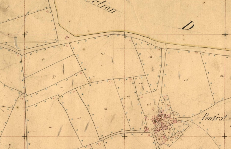 Croix de la fin du 18e siècle ou du début du 19e siècle érigée au carrefour du chemin vicinal de Saint-Ségal à Saint-Sébastien et du chemin vers Toul ar C'ham. Figurée sur le cadastre ancien de 1847 au même emplacement.