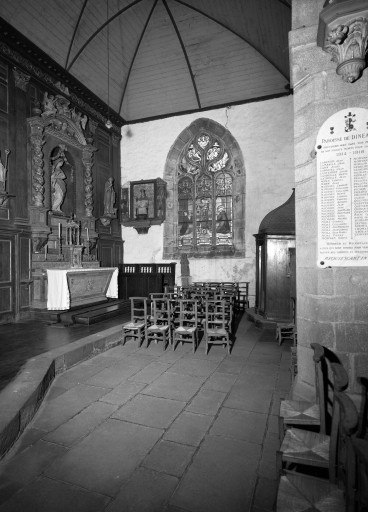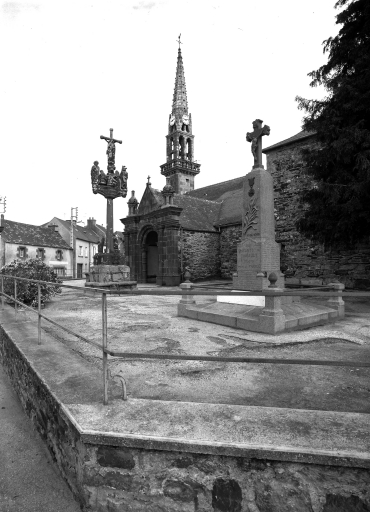 La paroisse relève, dès le 11e siècle, de l´abbaye bénédictine de Landévennec. D´un édifice construit au 16e siècle subsistent le choeur, une partie de l´élévation ouest ainsi que de la flèche ; la traverse sud et le sommet de la chambre des cloches portent respectivement les dates de 1632 et 1635 ainsi que les noms des fabriciens I. Guillou et G. Guillemot. La date de 1784 (clocher) correspond à une intervention ponctuelle. Au début du 19e siècle, le bâtiment menace ruine. Commence alors une longue période de reconstruction (1826-1891). Entre 1840 et 1847 : réfection de la nef, ajout du bas-côté sud avec remploi d´éléments anciens, reprise des bras du transept, construction du porche sud avec remploi d´éléments anciens ? (porte, colonnes baguées), dépose et repose de la flèche, reprise du pignon ouest. La sacristie, construite en 1870, remplace une sacristie plus ancienne. Le cadastre de 1848 montre un édifice sans porche sud. Le cimetière est translaté en 1933. L'espace de l'ancien cimetière a été amputé au sud lors de l'aménagement de la place alors que le calvaire est toujours en place, contrairement au monument aux morts, remonté à près du chevet de l'église. L'inventaire complet des objets mobiliers conservés dans ces édifices, non reconduit dans le cadre de cette enquête (fiches descriptives, photographies), avait été réalisé en 1972 ; il est disponible au centre de documentation du patrimoine (Région Bretagne).