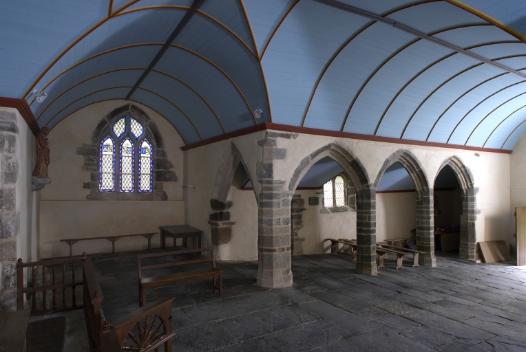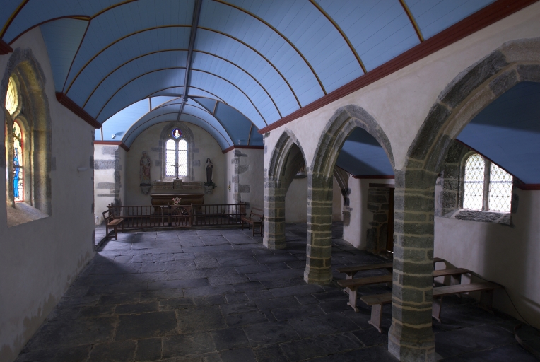Édifice de plan en croix latine comprenant une nef séparée du bas-côté sud à quatre travées par des arcades brisées reposant sur des piliers octogonaux. Baies à écoinçons : sainte Marie-Madeleine (maîtresse-vitre), armoiries des familles de Quillien et alliées (baie du bras sud), sainte Marie-Madeleine au pied de la croix (baie du bras nord). Sol couvert de très grandes dalles de schiste. Lambris de couvrement peint en bleu. Fontaine asséchée encastrée dans le massif du pignon ouest avec à l´intérieur une statue de sainte Marie-Madeleine. Clocher à une chambre de cloches sans galerie amortie par une flèche.