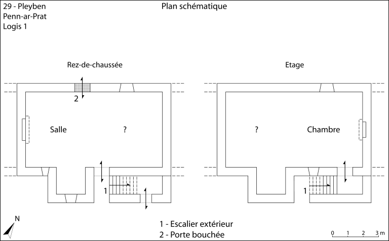 Typologiesmaison à avancée (à étage, toit rampant, escalier extérieur) ; type ternaire