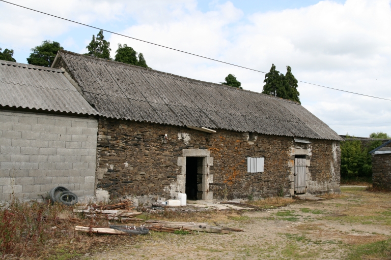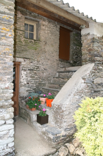 Gros-oeuvre en moellon de schiste, encadrements des baies (19e siècle) en pierre de taille de granite, linteau des ouvertures (17e et 18e siècle) en bois. Logis 1 : maison à avancée (à étage, toit rampant), avancée atypique : assez étroite (ne servant que de coin repas : table et bancs) et décalée par rapport au pignon. Cheminée à linteau et corbelets en bois, fenêtre de l´avancée agrandie au 19e siècle. A l´étage, une chambre (cheminée à linteau et corbelets en bois) est accessible depuis un escalier extérieur. Logis 2 : maison de type ternaire enduite à rez-de-chaussée surélevé.