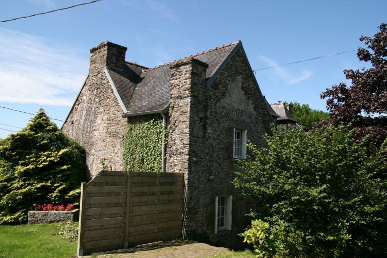 Gros-oeuvre en moellon de schiste et de grès arkosique, encadrements des baies en pierre de taille de granite. Murs du logis sud de l'ensemble de deux logis et du logis 2 couverts d'un enduit ciment, encadrement des baies du logis 2 en ciment moulé. Ensemble de deux logis : logis sud de type ternaire greffé sur la façade sud du premier logis. Logis nord de type maison à avancée (à étage, toit en bâtière) avec escalier extérieur sur la façade nord disparu. Cheminée dans l'angle de l'avancée à l'étage. Logis 1 de type ternaire. Logis 2 de type élémentaire (à deux pièces) à comble à surcroît.