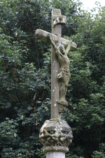 Croix érigée à la fin du 19e siècle dans l'enclos de la chapelle de la Madeleine en remplacement d'un ancien calvaire peut-être du 16e siècle (vestiges dans la chapelle, statue de sainte Madeleine dans le mur de la fontaine et remploi du noeud).