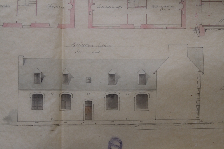Plan en T avec pavillon réservé au logement des instituteurs, classes en retour d'équerre.