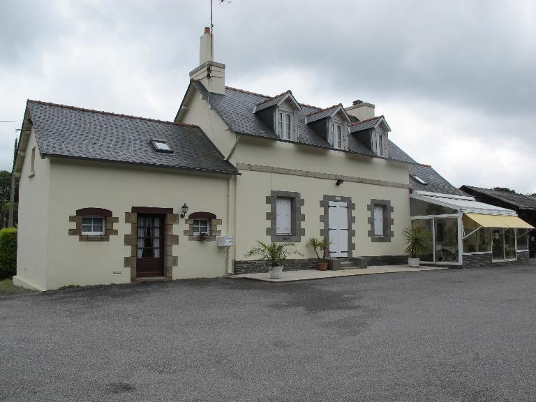 Logis : plan de type ternaire en rez-de-chaussée ; comble à trois lucarnes ; murs : moellons enduits ; perron, encadrements des baies harpés et bandeau horizontal au niveau du comble : pierre de taille de granite ; soubassement : moyen appareil de schiste ; deux souches de cheminée. Deux dépendances de part et d'autre du logis : toit à longs pans ; murs enduits ; à gauche : 1 porte entre 2 fenêtres horizontales, linteaux en bois. État actuel : dépendances aménagées ; environnement dénaturé : nombreux hangars, murets, chemin de halage transformé en parking.