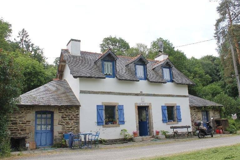 Logis : plan de type ternaire en rez-de-chaussée ; comble à trois lucarnes ; murs : moellons enduits ; encadrements des baies et bandeau horizontal au niveau du comble : pierre de taille de granite ; dallage de schiste devant la maison ; deux souches de cheminée.
