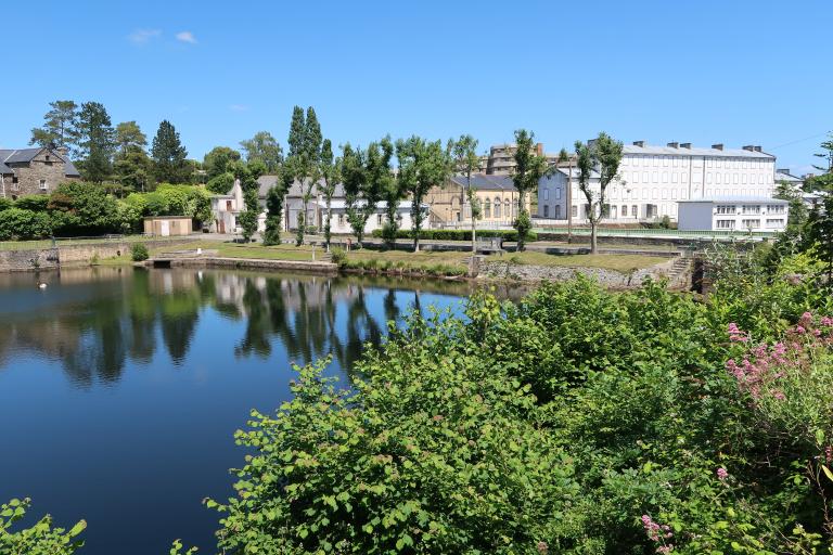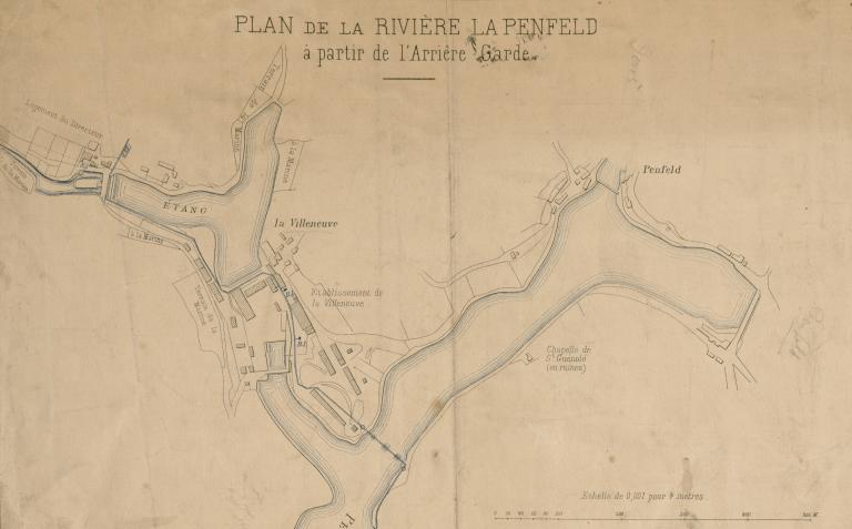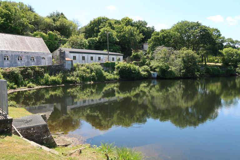 C'est au mois de mai 1767 qu’un négociant de Brest, M. Joseph Duplessis, jeta les premiers fondements de cette usine, en proposant d'établir à ses frais, dans l'anse de la Villeneuve : premièrement une forge à martinet pour convertir les vieux fers en fers neufs ; deuxièmement un moulin à scier pour le débit des bois employés dans le port. Les terrains nécessaires à l'établissement devaient être achetés par le Roi, mais remboursés par le soumissionnaire, qui se réservait la jouissance de l'usine pendant vingt ans, à partir du 1er janvier 1768, jour où elle commença à fonctionner. A l'expiration de ces vingt années, l'établissement et son matériel auraient appartenu au Roi, sans indemnité. M. Duplessis s'engagea à opérer, à prix réduits, la transformation des vieux fers et le sciage des bois. Le 3 juin, le ministre accepta ces propositions, et fit immédiatement acheter les terrains nécessaires. M. Duplessis avait fait emploi de 42 000 livres, lorsque deux faillites, dans lesquelles il se trouva impliqué, l'obligèrent, dès 1768, à demander au ministre, qui la lui accorda, une avance de 15 à 18 000 livres. Il put ainsi terminer l'usine au mois de mai 1770. Toutefois, de nouveaux dérangements étant survenus dans ses affaires, il demanda la résiliation de son marché, et la marine, après lui avoir remboursé ses avances, montant à 139 222 livres 6 sols 3 deniers, prit possession, le 1er mai 1772, de tous les établissements de la Villeneuve, qui reçurent de promptes améliorations. On commença par former un vaste étang dont les eaux couvrirent une partie notable des terrains achetés par le Roi, puis on creusa dans les marais de Bodonou, en Plouzané, un canal qui devait faire dériver dans cet étang deux ruisseaux, le Coat-Enez et l'Hallégot, en Saint-Pierre-Quilbignon, ruisseaux qui, suivant la pente du terrain, avaient pris la direction de Saint-Renan. Par suite d'opposition des riverains, les travaux entrepris pour amener les eaux de l'Hallégot furent abandonnés, et la marine s'en tint à ceux de Coat-Enez. Ce ruisseau et celui de Keroual, dévalant de Guilers, curés tous les ans, se déversent dans l'étang qui a de superficie 27 000 mètres carrés. Son plus haut niveau est de 2,5 m et son niveau moyen de 1,63 m. Dans la saison pluvieuse, il atteint 1,776 m, et dans la saison sèche, c'est-à-dire pendant les mois d'août, septembre et octobre, il descend à 1,40 m.