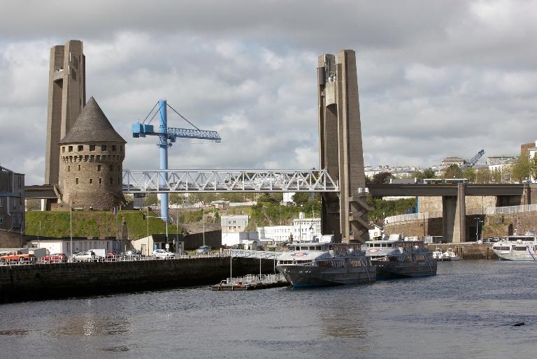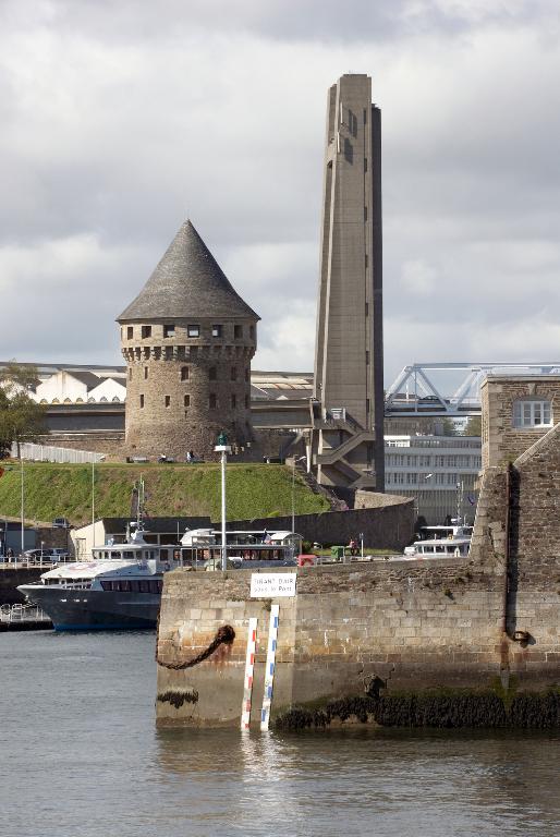 Tour dite "Bastille de Kernéguez", "Bastide de Quilbignon", "Tour de la Motte-Tanguy", abrégée en "Tour Tanguy", réputée construite à fin du 14e siècle (vers 1380 ?). Située face au château de Brest, elle est destinée à l’origine à surveiller l’entrée de la Penfeld. Selon Patrick Kernevez, cette tour faisait partie d’un ensemble défensif plus important. En 1455, "La Motte-Tanguy" à Quilbignon appartient à François du Chastel. Démilitarisée après 1491, la tour sert ensuite d’auditoire pour la justice seigneuriale.