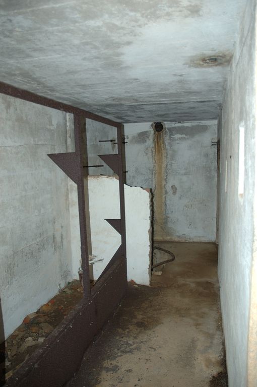 Abri bétonné doté d'une embrasure pour mitrailleuse lourde tournée vers l'anse de Bertheaume, traces d'installation électrique de forte capacité (emplacement d'un groupe éléctrogène avec sortie d'évacuation des gaz, transformateur, tableau électrique de grandes dimensions, passage de câbles et câbles), le tout semble relié à la terrasse dotée d'étranges poutrelles métalliques sortant d'environ un mètre. Hypothèse envisagée : abri pour groupe électrogène servant à l'alimentation d'un projecteur éclairant l'anse de Bertheaume ; système de communication par feux ou balises visuelles par feux électriques de l'aérodrome de Guipavas.