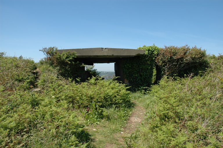 Poste d'observation bétonné à deux niveaux (poste d'observation et de télémétrie), sur le chemin d'accès de la batterie basse, Pointe de Cornouaille (Roscanvel)